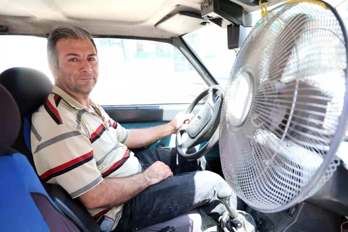 Adana’da bir şoför klimasız olan 87 model arabasına sıcaktan bunalınca vantilatör taktı.