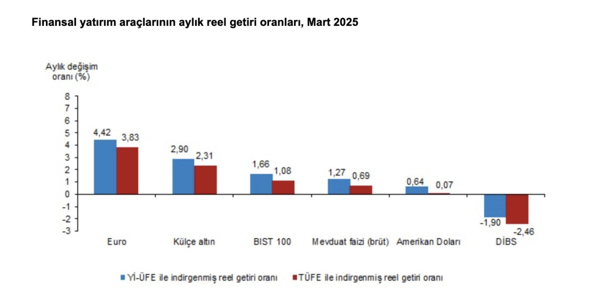 Türkiye İstatistik Kurumu (TÜİK), mart ayı finansal yatırım araçlarının gerçek getiri oranlarını paylaştı.