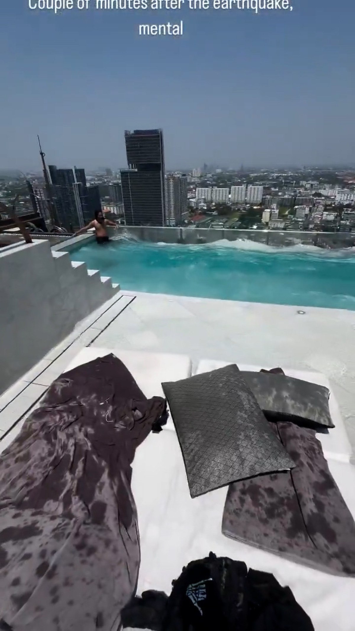 Myanmar’daki sarsıntı, Tayland’ın başşehri Bangkok’taki gökdelen ve rezidansların en üst katındaki havuzların suyunun aşağıya boşalmasına neden oldu.