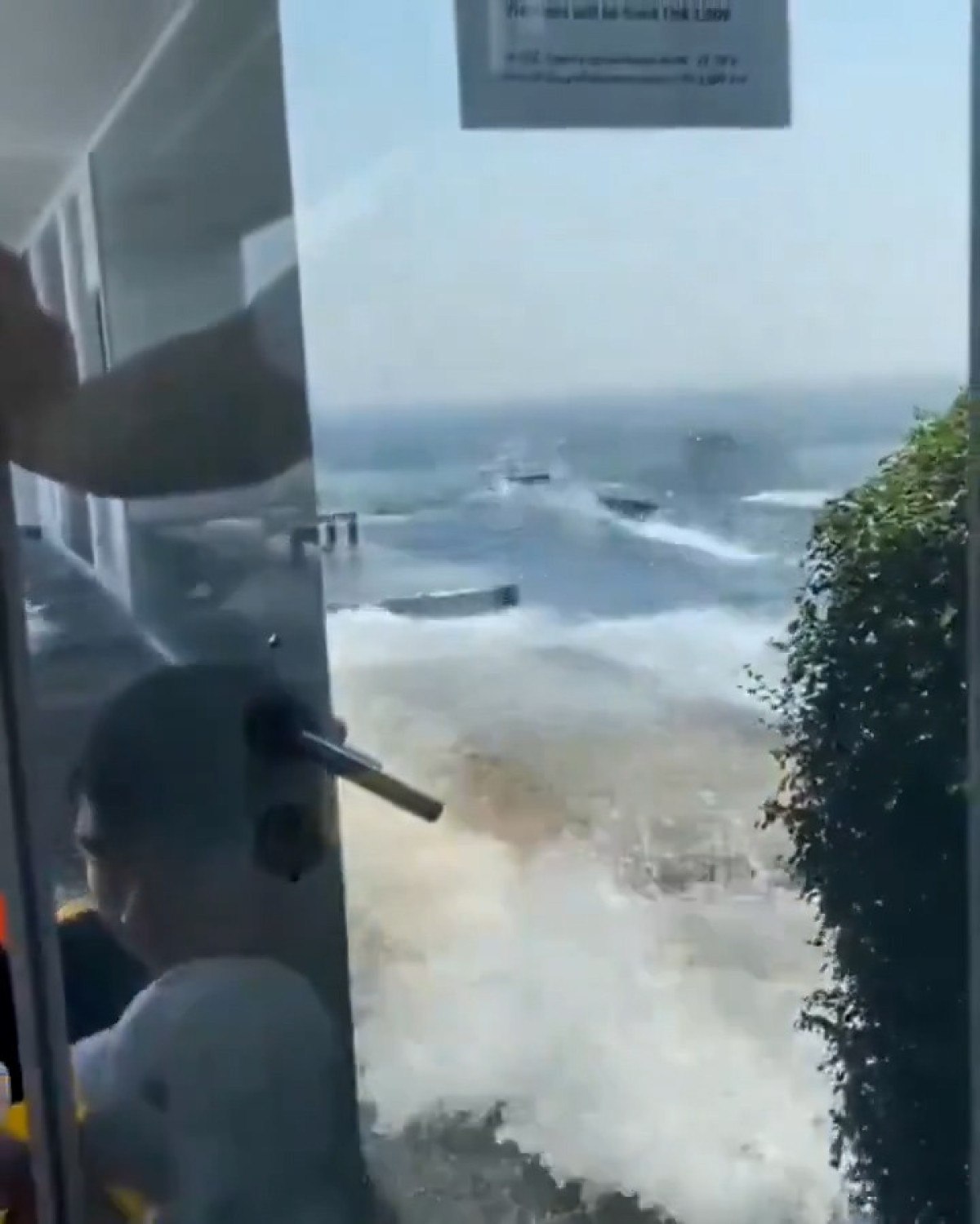 O sırada havuzda olanların kaçmak yerine olayı görüntülediği ve hatta havuzdan çıkmak gereğini duymadıkları imajlara yansıdı.