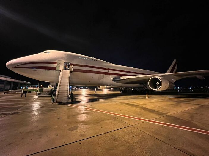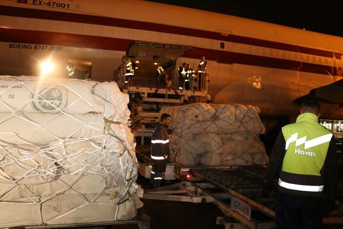 Pakistan’dan Türkiye’nin Adana vilayetine gece yarısı, 2 bin 400 çadır iki charter uçakla  ulaştı.